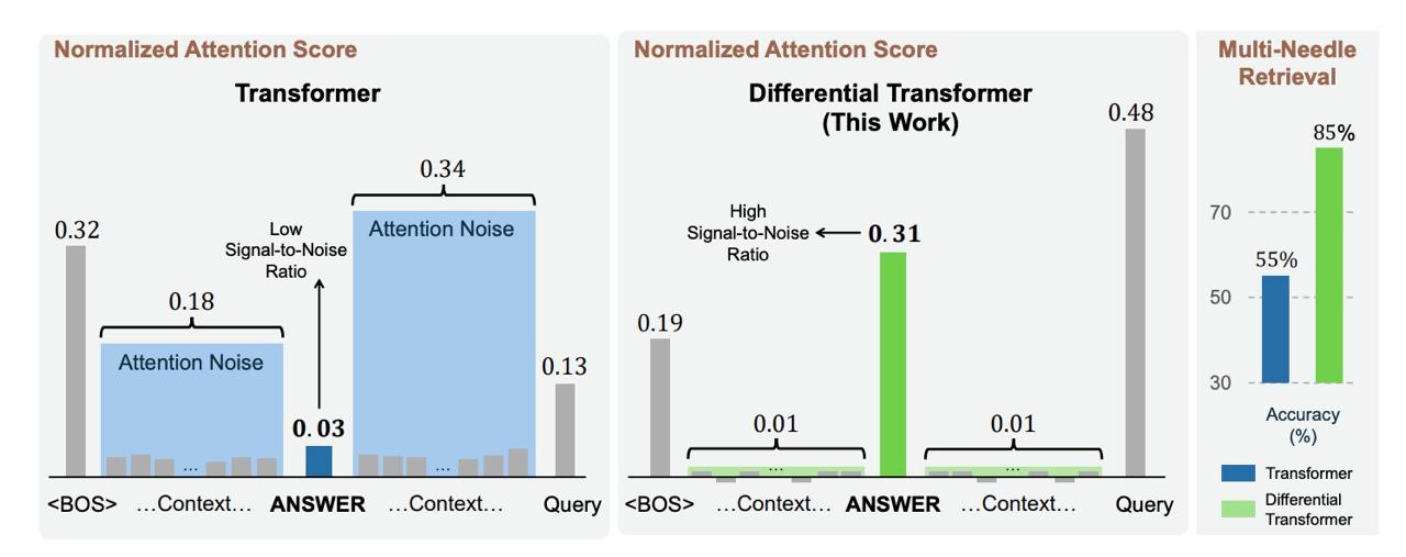 Недавняя научная работа предлагает кардинальное решение — Differential Transformer. Новая архитектура заимствует идеи из электроники, конкретно — принцип дифференциального усилителя, который используется, например, в аудиотехнике для активного шумоподавления.
